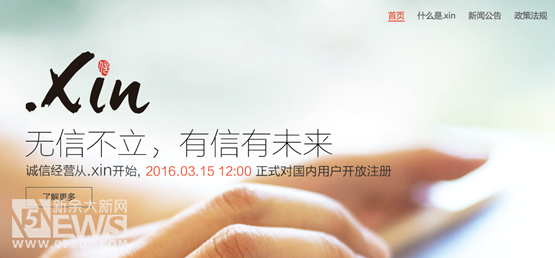 【环球科技综合报道】日前,阿里巴巴内部人士透露,阿里云旗下全球首个诚信通用顶级域名.xin(音同“信”),将于3月15日正式对 境内用户开放注册,届时用户可以直接通过阿里云官网进行查询与购买。