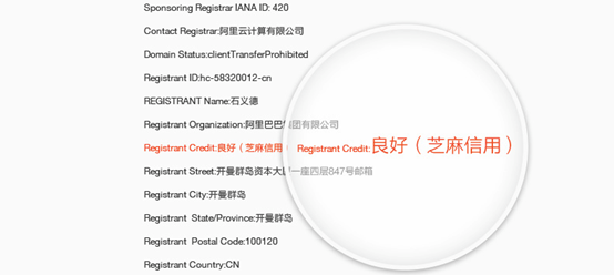 该人士表示,.xin已经引入芝麻信用和诚信通作为诚信联盟重要的战略合作伙伴,域名所有者可以授权将自己在芝麻信用或诚信通评估的诚信指数通过域名注册信息直接展示出来,提升网站可信度。网民也可以像查看淘宝卖家好评率一样,通过域名信息查询功能快速了解该域名所有者的诚信指数。