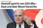 赫内斯:梅西2亿欧走起 拜仁若有中国人日赚3亿 新官上任三把火,拜仁慕尼黑新任主席赫内斯重返“旧岗位”后