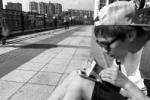 为庆祝微博粉丝破5千万 邓超上天桥贴膜去了