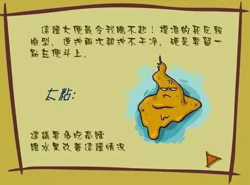 黏腻便就不单纯是脾虚有湿的问题了,而是湿热。大便黏腻,提示体内湿热严重。《内经》中说:“膏粱之变,足生大疔。”即常食味厚、脂多、油腻的食物会导致湿热内蕴,湿热不能运化积存体内,与肠道内的粪便结合,便会形成黏腻便。